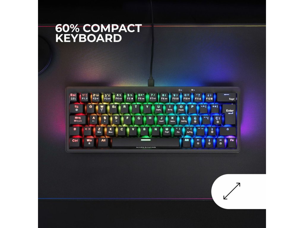 Mars Gaming MKMINIPROYES je kompaktná herná klávesnica s US QWERTY rozložením, ktorá ponúka profesionálny výkon v minimalistickom 60 % formáte.